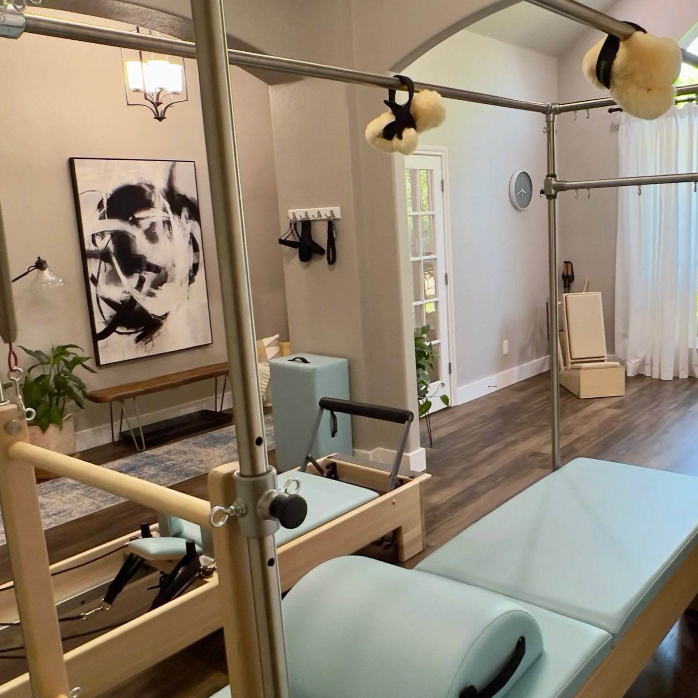 My private Pilates studio in North Richland Hills (near Davis Blvd & North Tarrant Parkway) serves clients from Keller, Southlake, Colleyville, and surrounding DFW areas. The studio is a cozy, dog-friendly space, fully equipped with Balanced Body reformers, a Cadillac, ladder barrel, arm chair, and Wunda chair—ideal for personalized instruction in a quiet, supportive environment.